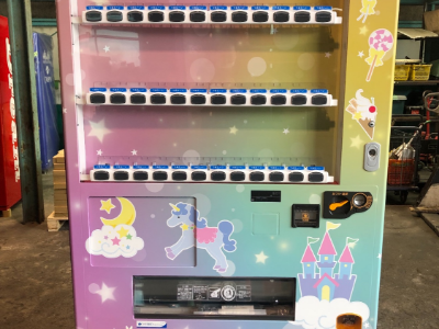 ラッピングシートを貼り付け施工することで、オリジナルデザインの自動販売機を作成します。